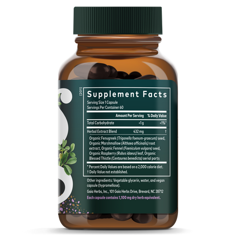 Lactation Support er jurtablanda í hylkjum sem er hönnuð til að styðja við heilbrigða framleiðslu brjóstamjólkur hjá mjólkandi mæðrum.