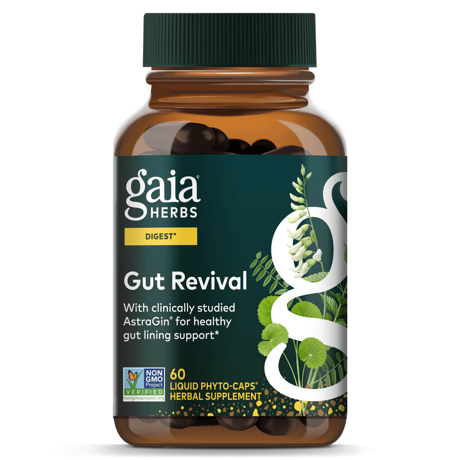 Gut Revival frá Gaia Herbs er sérstaklega hannað til að styðja við heilbrigða þarma og meltingu. Þessi öfluga formúla inniheldur klínískt rannsakaða innihaldsefnið AstraGin® ásamt hefðbundnum jurtum eins og Gotu Kola, Jujube og Chamomile sem vinna saman að því að styðja við þarmalíðan, næringarupptöku og heilbrigða meltingu.