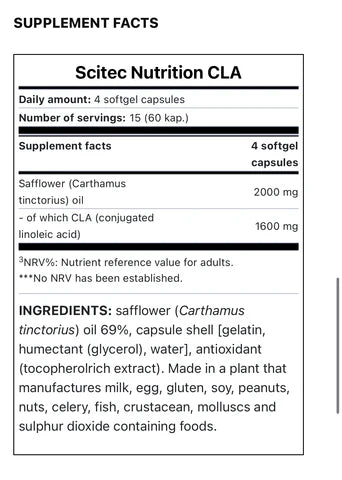 🔥 Hvernig CLA virkar:• Auðveldar niðurbrot eða brennslu uppsafnaðrar fitu • ⚡ Stuðlar að því að líkaminn noti fituna til orkumyndunar • Hjálpar til að breyta fitu úr fæðunni í orku • 💪 Stuðlar að uppbyggingu vöðva á kostnað fituvefja • Öflugt andoxunarefni • 📉 Hjálpar líkamanum að binda minni fitu eftir hverja máltíð